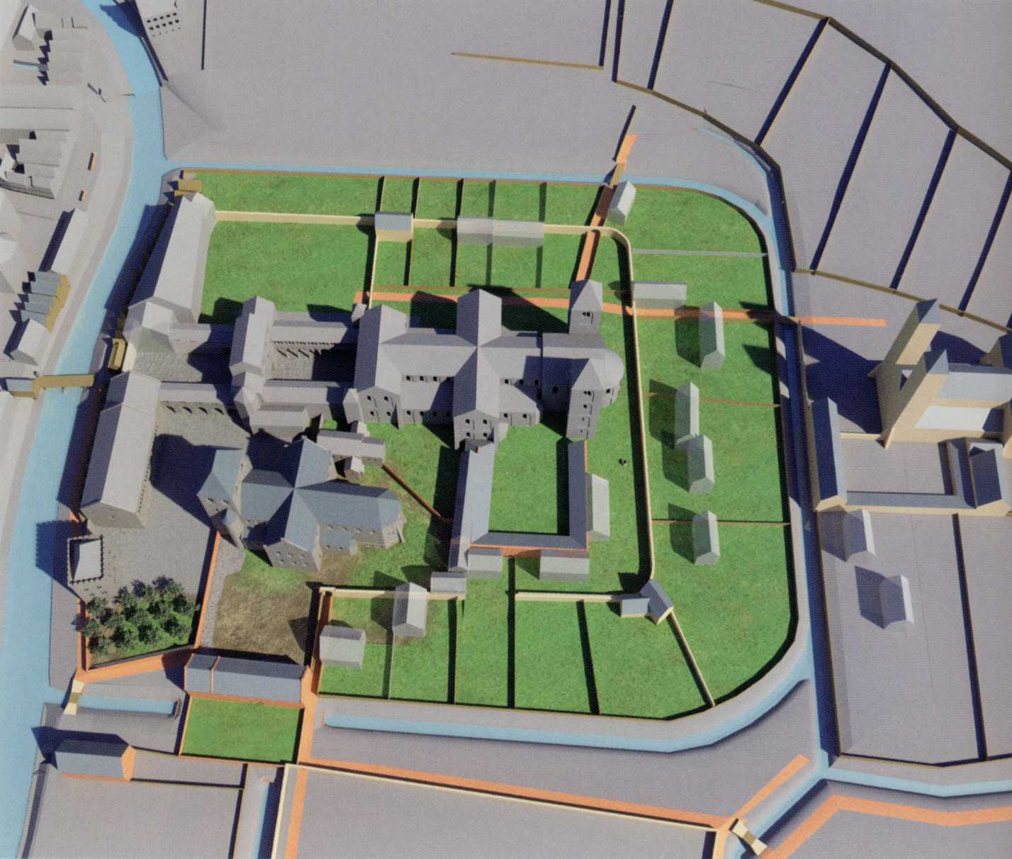 [1] Zie ook E.J. Haslinghuis, De Nederlandse monumenten van geschiedenis en kunst I, De provincie Utrecht, 1ste stuk, De gemeente Utrecht I (’s-Gravenhage 1956) 1. [2] Voor de vroegmiddeleeuwse geschiedenis van onze streken zie D.P. Blok, De Franken in Nederland (3de druk, Haarlem 1979). [3] Zie hiervoor vooral de nog verkrijgbare monografie van C.J.C. Broer en M.W.J. de Bruijn, Bonifatius en de kerk van Nederland (Utrecht 2005). [4] Broer en De Bruijn, ‘Bonifatius en de kerk van Nederland’. [5] Voor de graven zie C. Dekker, Het Kromme Rijngebied. Een institutioneel-geografische studie. Stichtse historische reeks 9 (z.pl. 1983) 365-388; voor de burggraven M.W.J. de Bruijn en M.A. van der Eerden-Vonk, ‘Het Utrechtse burggraafschap’, in: C. Streefkerk en S. Faber red., Ter recognitie. Opstellen aangeboden aan prof. mr. H. van der Linden (Hilversum 1987) 55-81; en A.L.P. Buitelaar, De Stichtse ministerialiteit en de ontginningen in de Utrechtse Vechtstreek. Middeleeuwse studies en bronnen XXXVII (Hilversum 1993) 23-39. [6] A. van Metz, De diversitate temporum, H. van Rij m.m.v. A. Sapir Abulafia uitg., (Amsterdam 1980) 22-23. Afb. 2. De burchtmuur. Het verschil tussen het regelmatige Romeinse muurwerk en de rommelige vroegmiddeleeuwse herstellingen is duidelijk zichtbaar. ![]() Afb. 3. Deel van een zuilarcade met zuilen van de keizerpalts Lofen uit het midden van de elfde eeuw. ![]() Afb. 4. Driedimensionale reconstructie van de burcht omstreeks 1200. Veel onderdelen zijn speculatief, enkele aantoonbaar onjuist. Dergelijke reconstructies kunnen slechts een globaal beeld van een situatie op een aangenomen tijdstip geven. Alleen grondig detailonderzoek van alle bronnen kan op de lange duur een grotere zekerheid opleveren, maar het aantal onbekende elementen zal altijd groot blijven. Ontleend aan H. Hundertmark en K. van Vliet, De Paulusabdij (Utrecht 2010) 60. [7] M.W.J. de Bruijn, ‘De datering en eerste bestemming van Wed 5-7 in Utrecht’, in: Maandblad Oud-Utrecht 63 (1990) 85-88. [8] L.R.P. Ozinga e.a., Het Romeinse castellum te Utrecht (Utrecht 1989) 41. [9] Haslinghuis, De Nederlandse monumenten, 41-42. [10] M.J. Dolfin e.a., Utrecht. De huizen binnen de singels. De Nederlandse Monumenten van Geschiedenis en Kunst II, De provincie Utrecht, 1ste stuk, De gemeente Utrecht III (’s-Gravenhage 1989) 3. [11] Ozinga, Het Romeinse castellum, 104. [12] Aldus een overigens pas veel later vervaardigde oorkonde, die gedateerd is op 940. S. Muller Fz. en A.C. Bouman uitg., Oorkondenboek van het Sticht Utrecht tot 1301 I (Utrecht 1920) nr. 104. [13] A.F.E. Kipp, ‘Lichte Gaard 7’. Archeologische en Bouwhistorische Kroniek van de Gemeente Utrecht 1986, Maandblad Oud-Utrecht 60 (1987) 193-194; R.P.J. Kloosterman, Archeologisch onderzoek naar het castellum en het bisschoppelijk paleis. Basisrapportage Archeologie 41 (Utrecht 2010) 10-11 en 23-27. [14] B. Koopmans, Lofen. Een elfde-eeuws keizerlijk paleis in Utrecht. Clavis Kleine Kunsthistorische Monografieën 9 (Utrecht en Zutphen 1989) 10. [15] C.W. Vollgraff en G. van Hoorn, ‘De opgravingen in juni en juli 1933’, in: Opgravingen op het Domplein te Utrecht (Haarlem 1934) 45-47; Kloosterman, a.w., 10-11 en 23-27. |