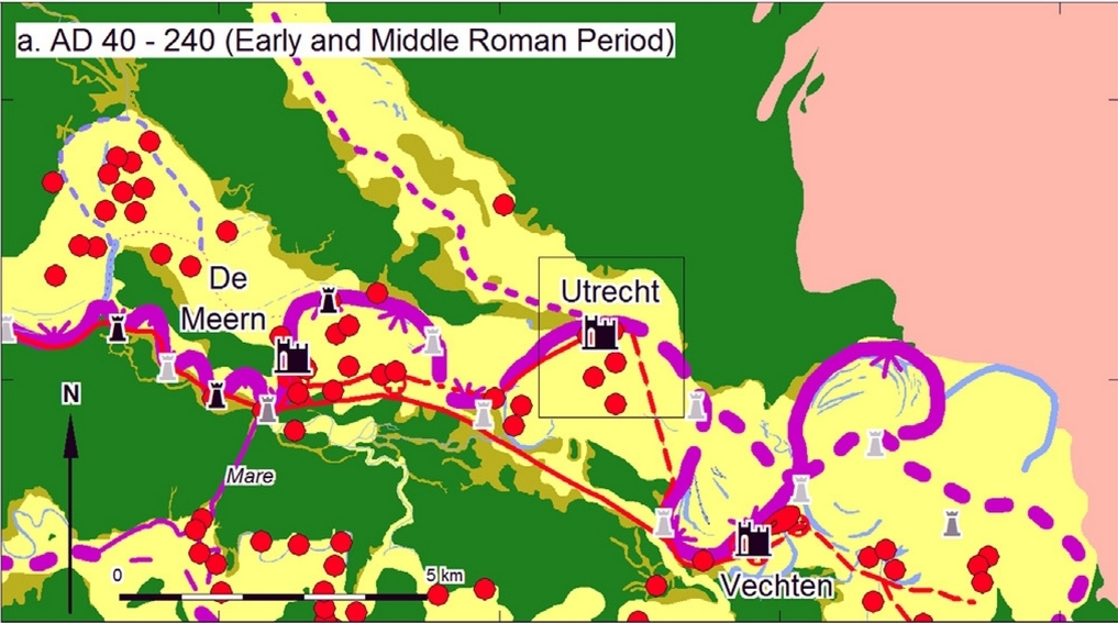 bifurcation was located ~1.5 km southeast of the Roman fort in Utrecht,